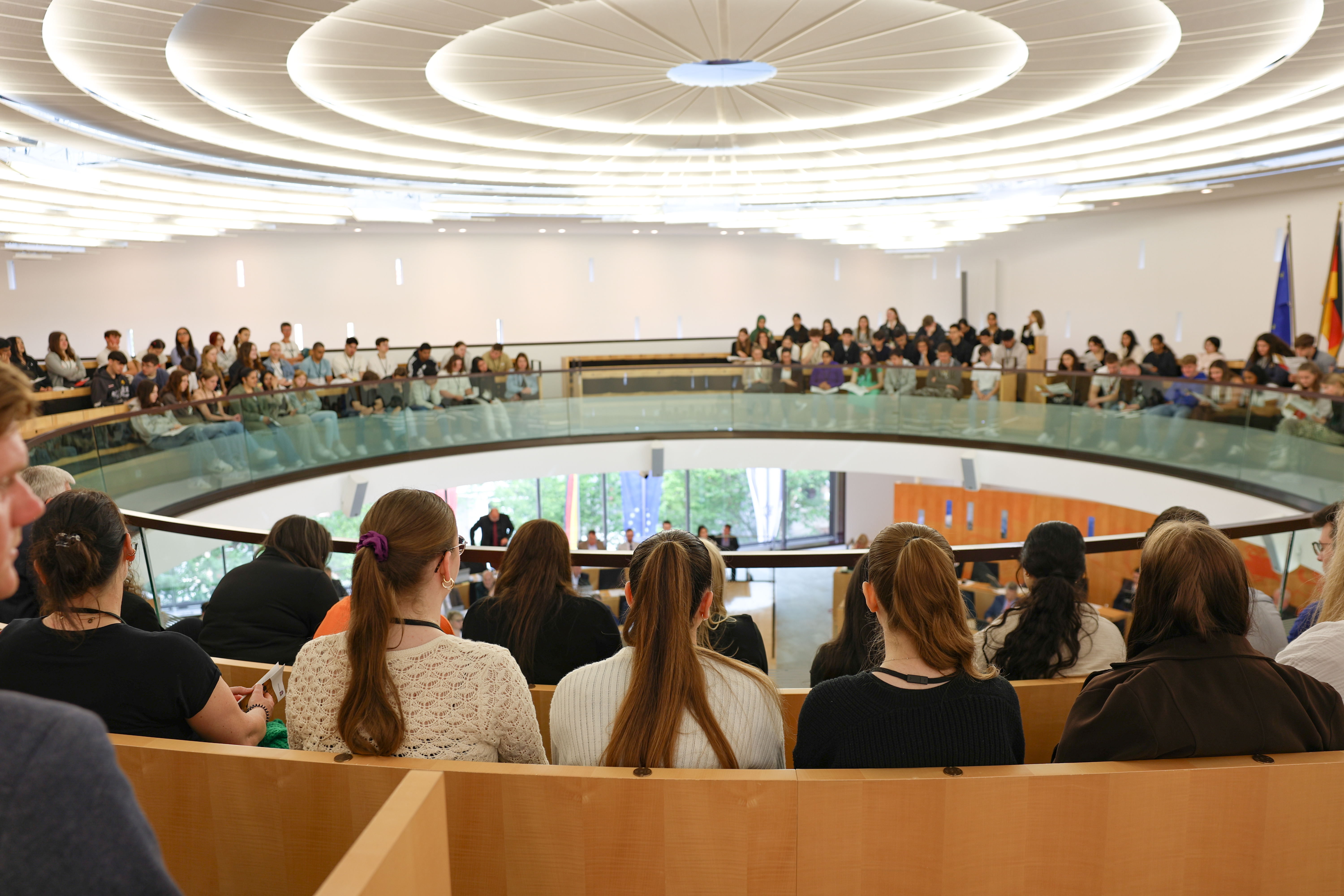 Transparent, bürgernah und offen für den Dialog – nach diesen Prinzipien wurde das Plenargebäude des Hessischen Landtages errichtet und so sind Besuchergruppen sowie Einzelpersonen nach vorab erfolgter Anmeldung während der Plenartage auf der Besuchergalerie herzlich willkommen. Von dort haben die Gäste einen guten Überblick über die Debatten des Parlamentes und können sich einen persönlichen Eindruck von einer Plenarsitzung und der Arbeit der Abgeordneten verschaffen.